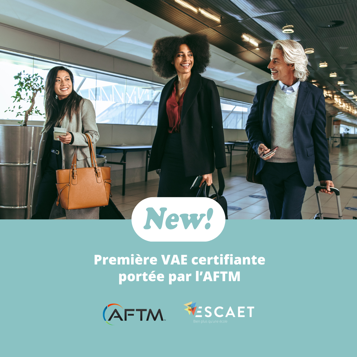 L’ESCAET et l’AFTM s’associent et lancent une VAE dédiée au Travel Management, permettant d’obtenir un bloc certifiant intégré au Titre RNCP Niveau 7 – Manager des activités du Tourisme et des Voyages.